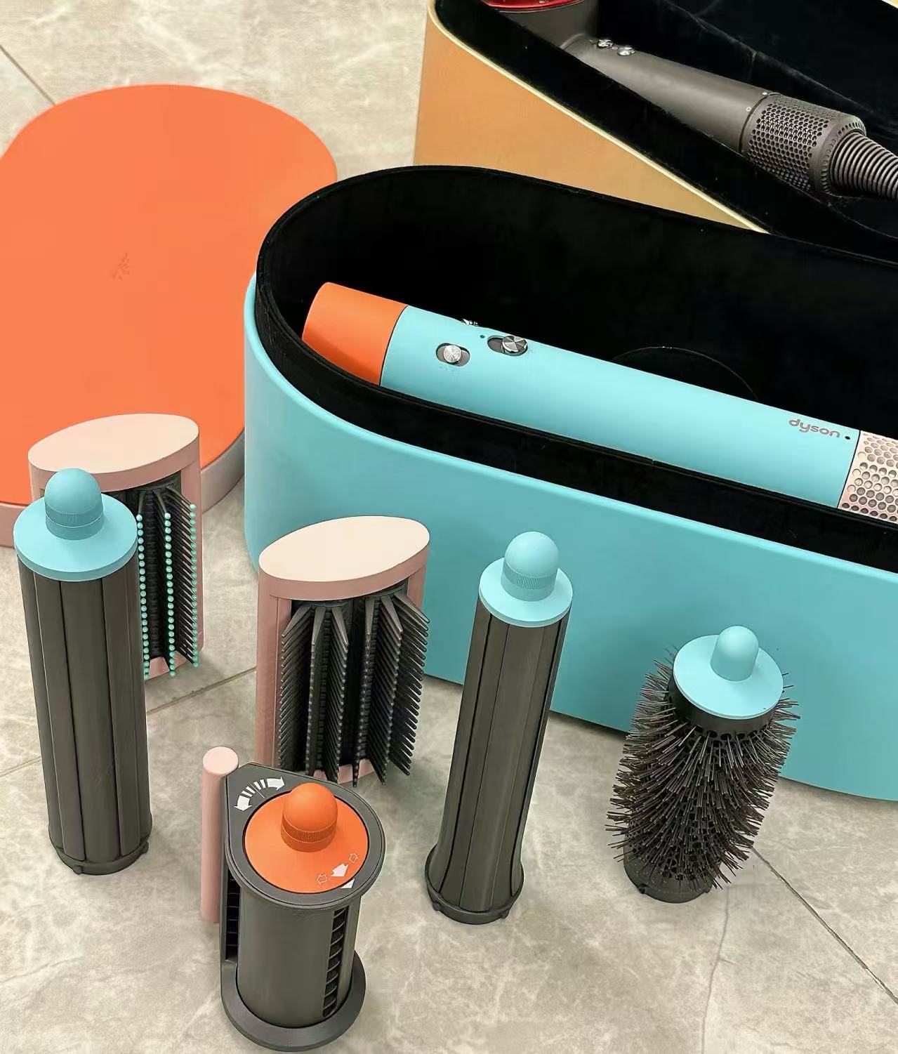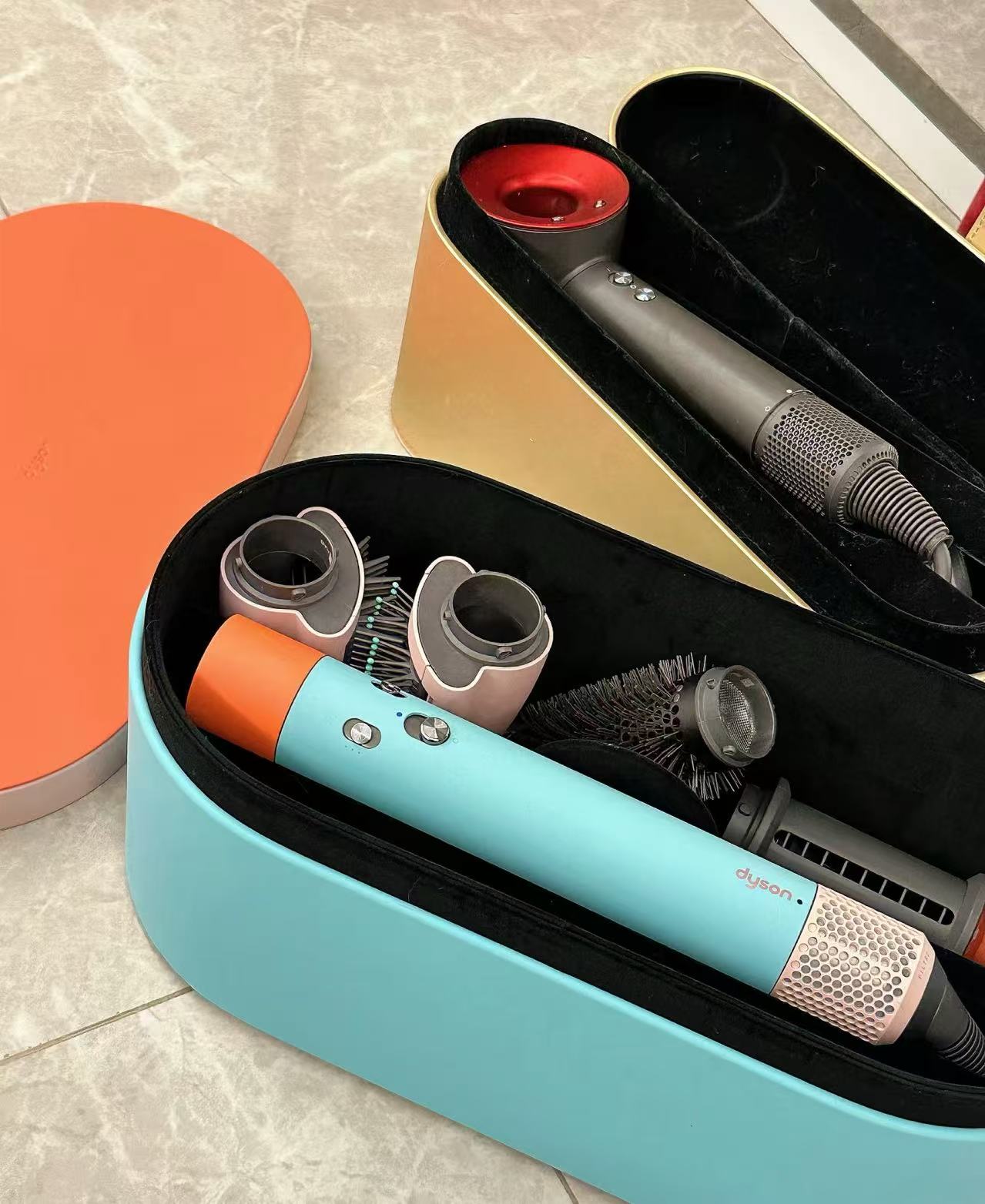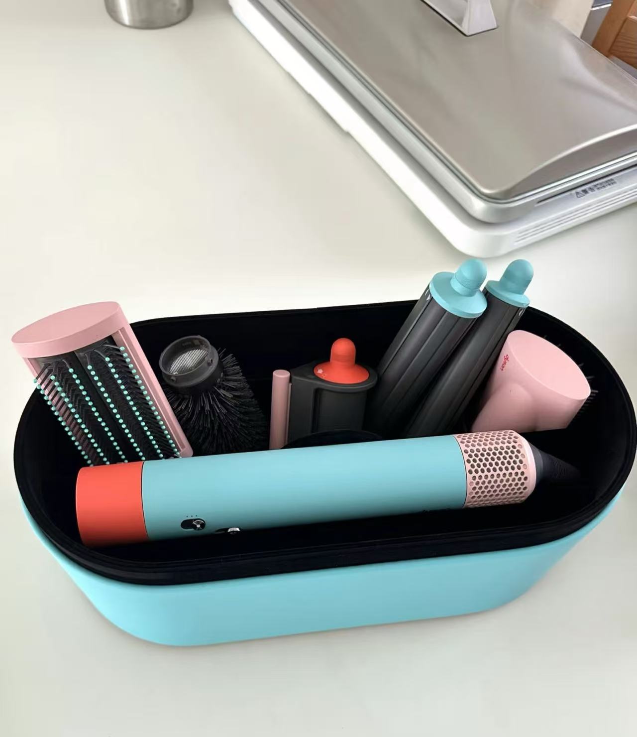 Developed Periwinkle Blue storage box neatly store your Dyson Airwrap™ and accessories.