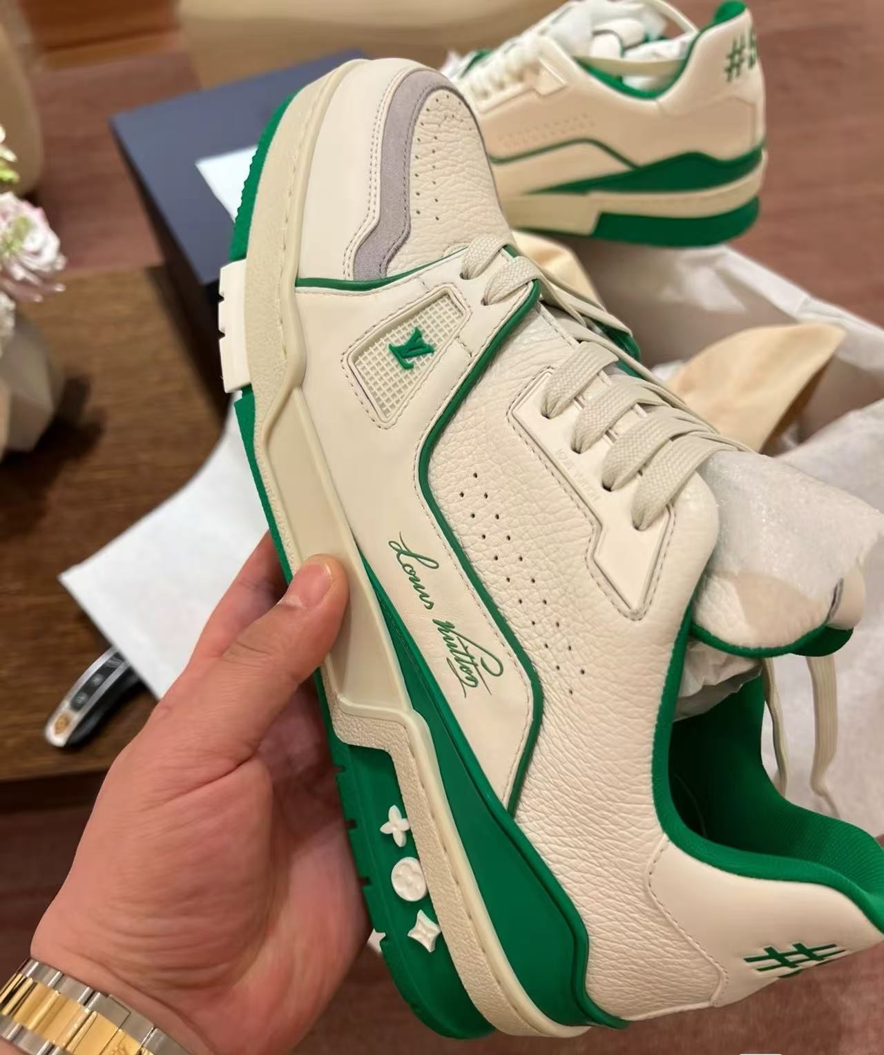 • Louis Vuitton Trainer All Blue White Green Lychee Pattern
