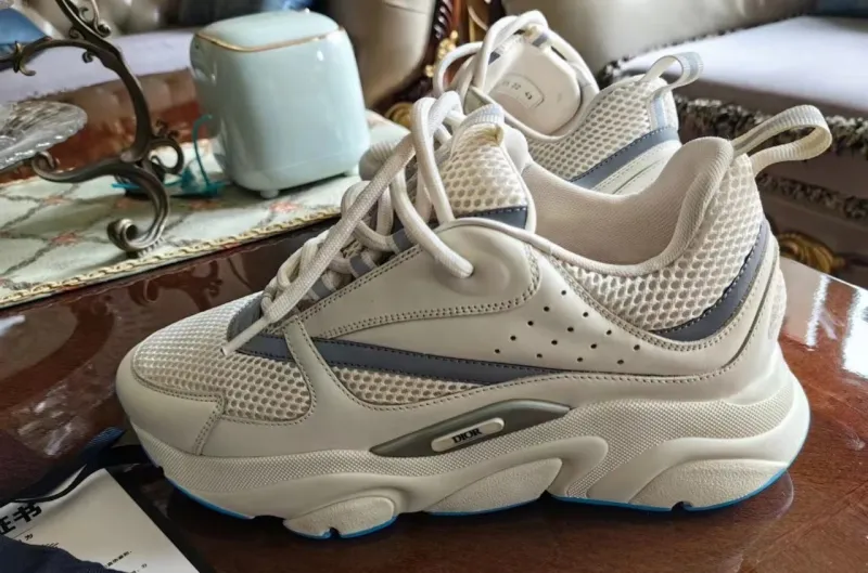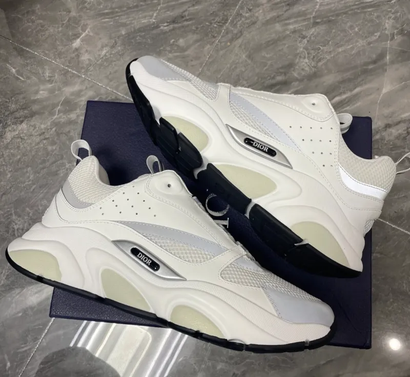 The B22 sneaker reimagines the chunky sneaker through a retro lens. Combining different materials and textures, including black smooth calfskin and technical mesh, it has a bold, sportswear aesthetic. Round laces and a raised 'DIOR' signature on the side complement the thick sculpted rubber sole. The sneaker can be worn with any casual piece for a sporty and contemporary silhouette.